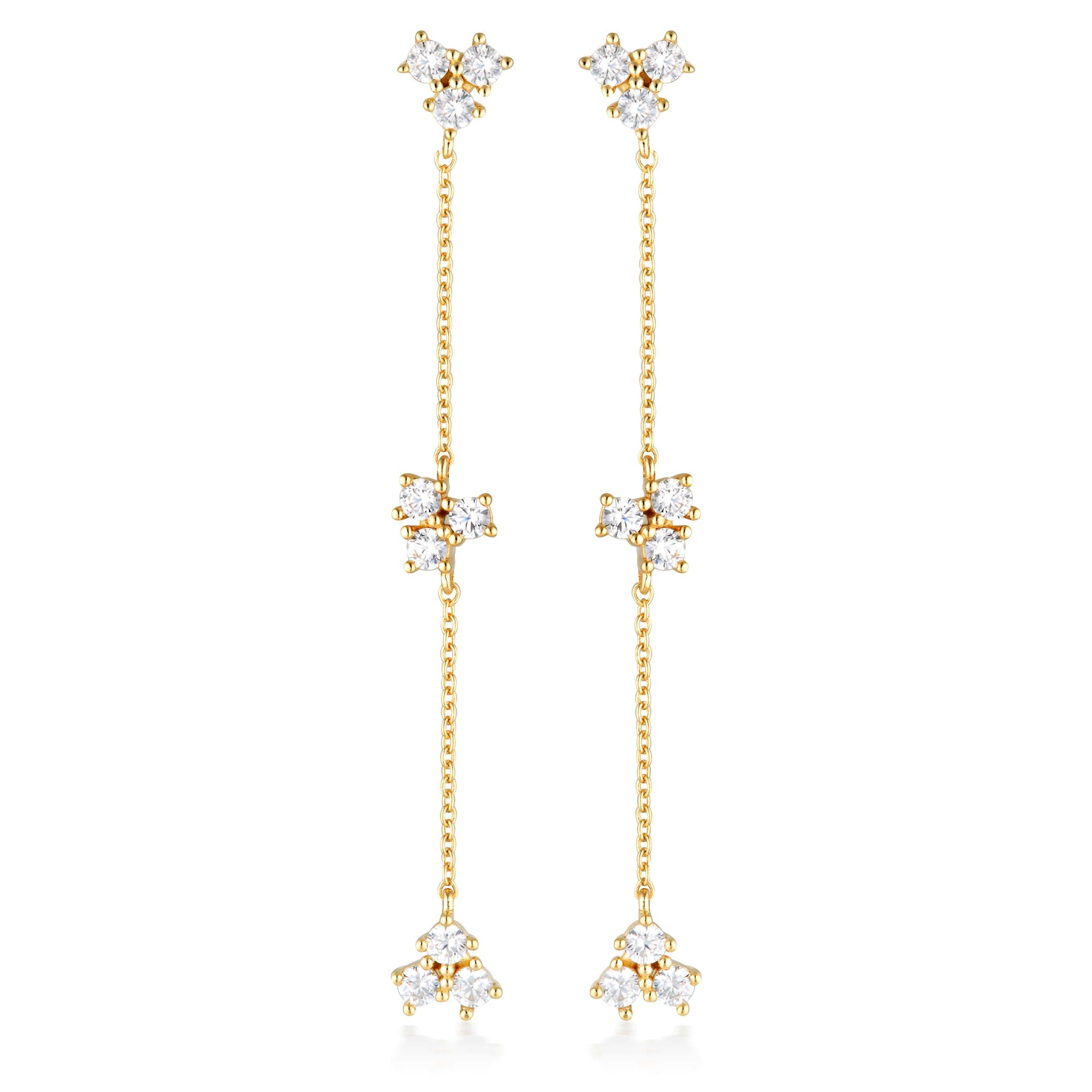 Elevate your look with the TROIS Earrings from GEORGINI. Featuring three dazzling cubic zirconia trios, delicately hung on a 5cm chain, these earrings exude sophistication and style. Complete your ensemble with the TROIS necklace, bracelets, and ring. Meticulously crafted from 18ct Gold plated 925 Sterling Silver, these earrings are a must-have for any jewelry collection.